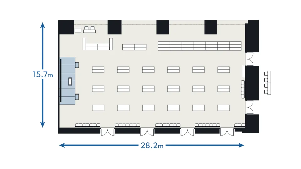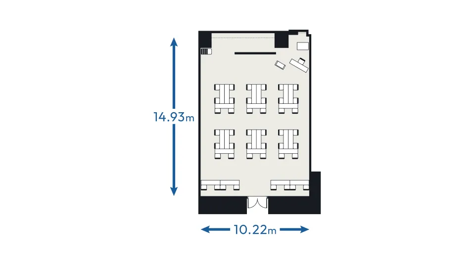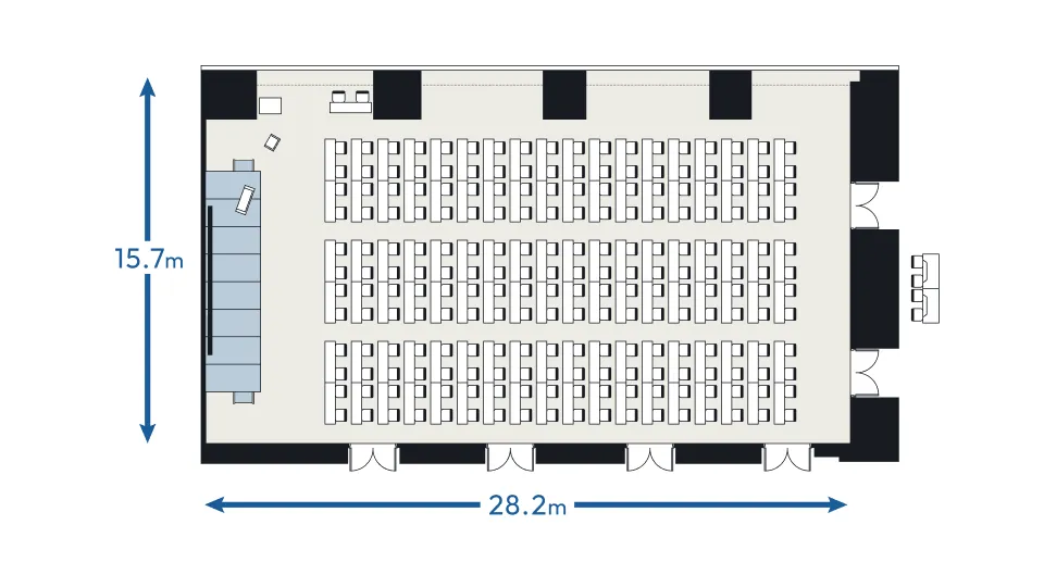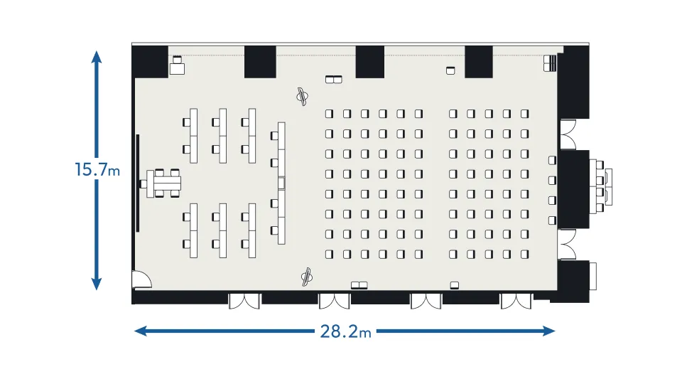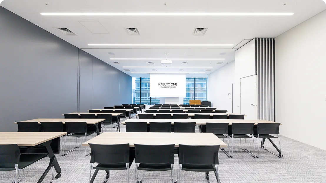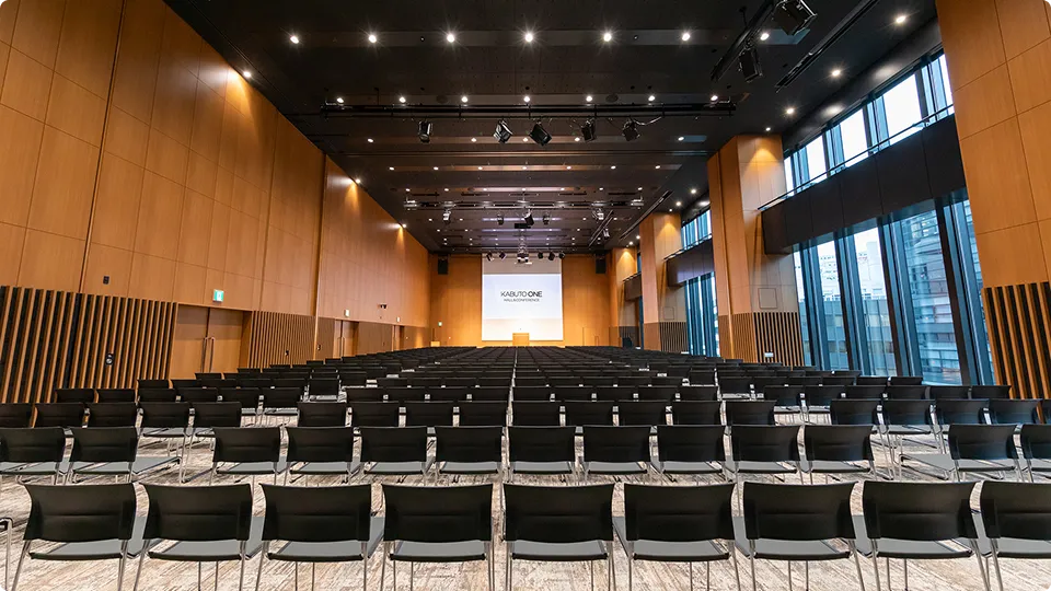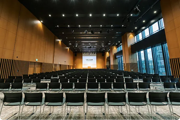 日本橋兜町・茅場町エリア最大規模のホール500名超収容可能なホールは天井高8mの上質で開放的な大空間。明るく解放感があり、2分割でのご利用も可能。10名~150名規模は大小7つの豊富なルーム(会議室)からお選びいただけます
