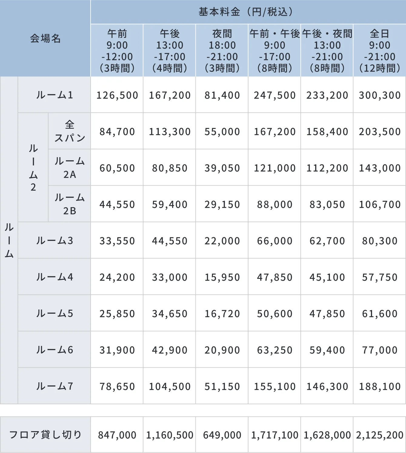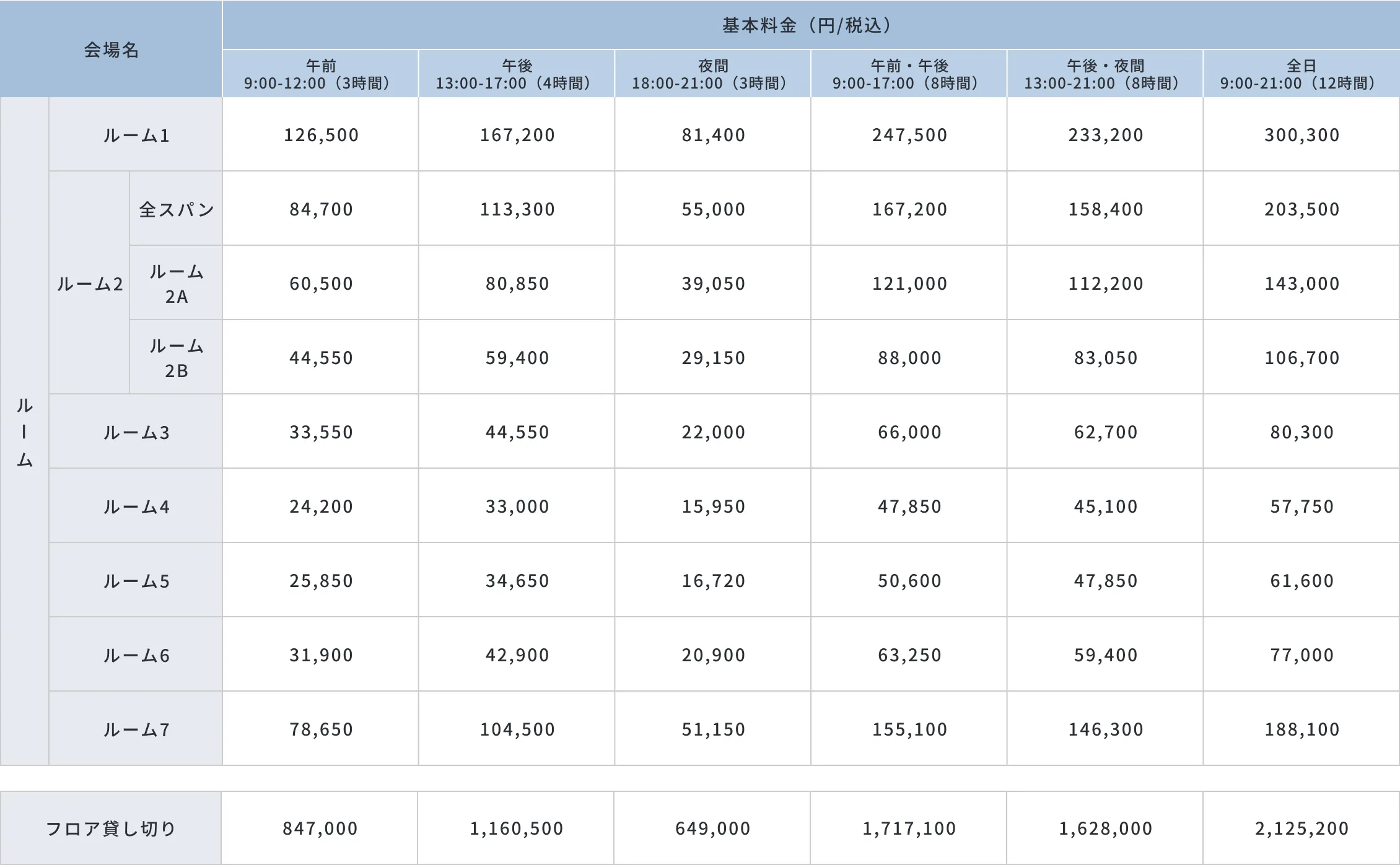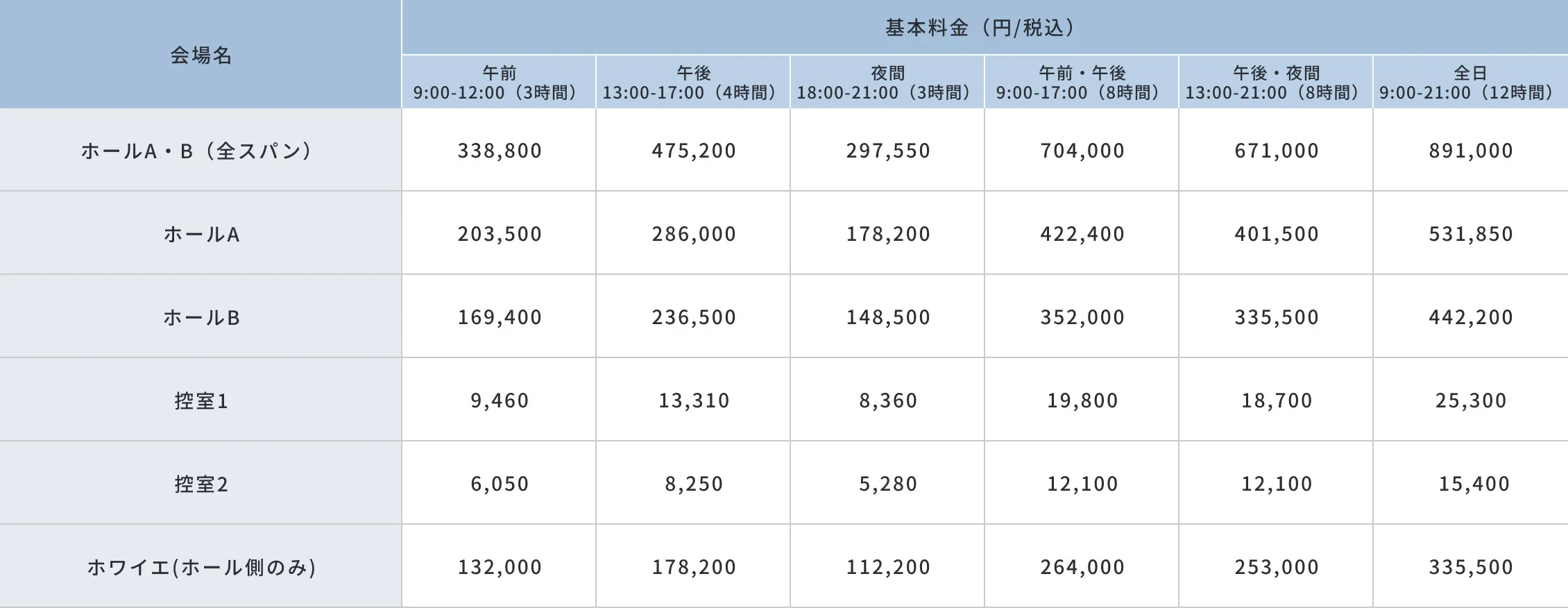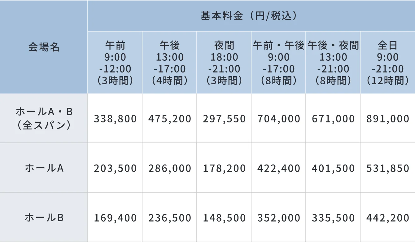 に記載のホール・ルームは空きがあります。お問い合わせください。